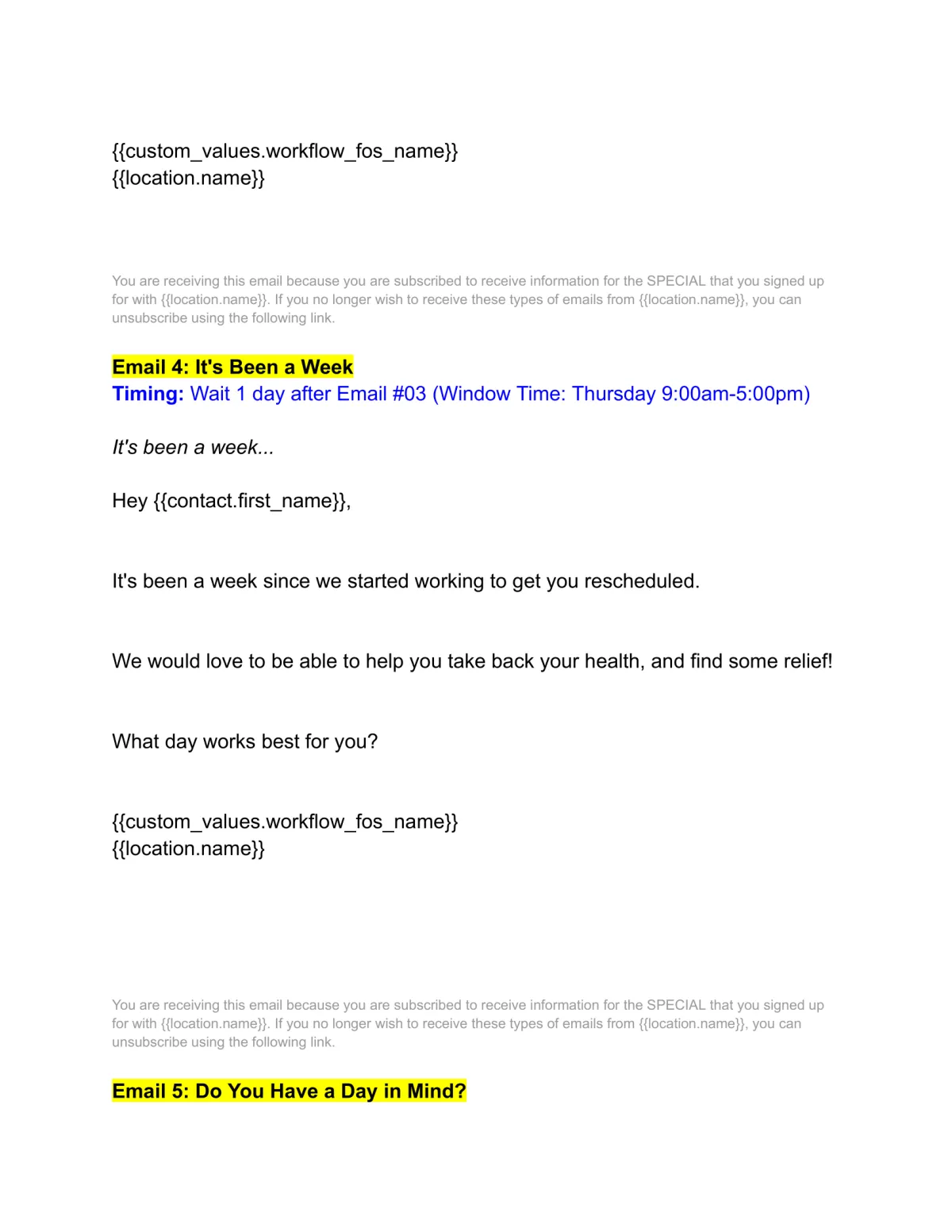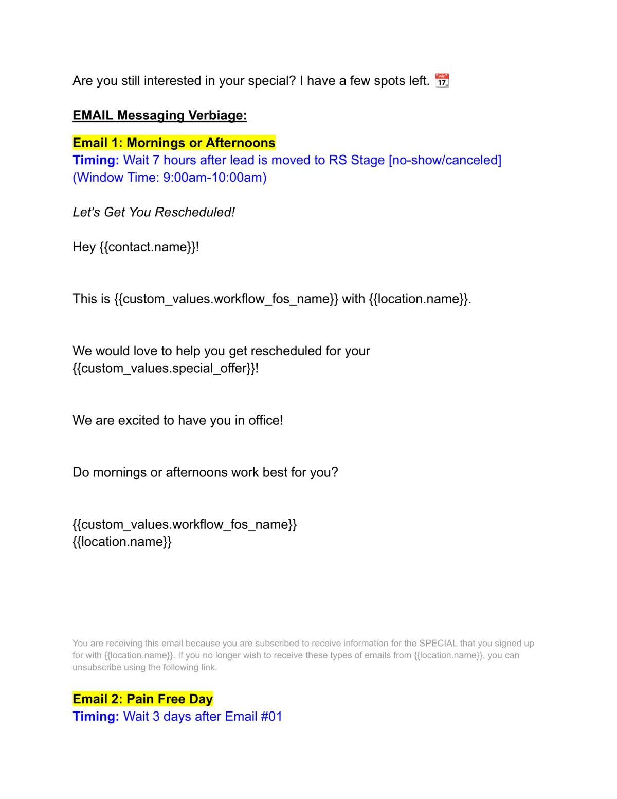 Discover how we intentionally and uniquely pursue leads who have no-showed & need to be reschedules vs. leads who call, cancel & need to reschedule. We have two separate follow-up sequences. See highlighted text identifying where the wording differs between the two. Includes both the template wording & timing.